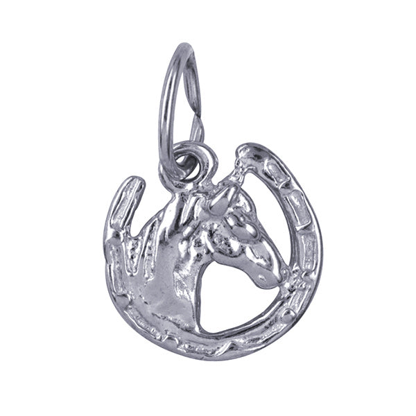 S/SILVER HORSEHEAD IN HORSESHOE CHARM