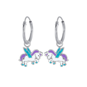Tiny Treasures Sterling Silver Children's Flying Unicorn Hoop Earring