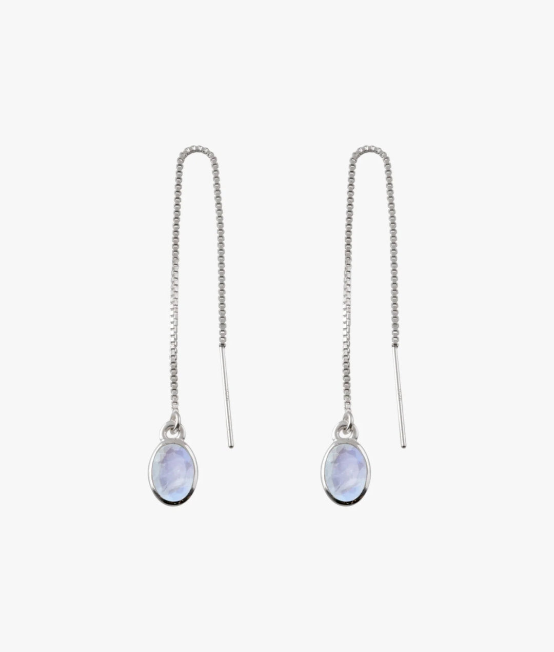 Von Treskow Silver Oval Moonstone Thread Earrings