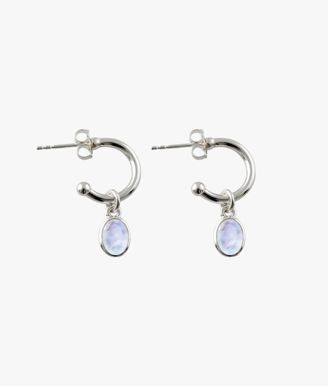 Von Treskow Silver Oval Moonstone 3/4 Hoop Studs