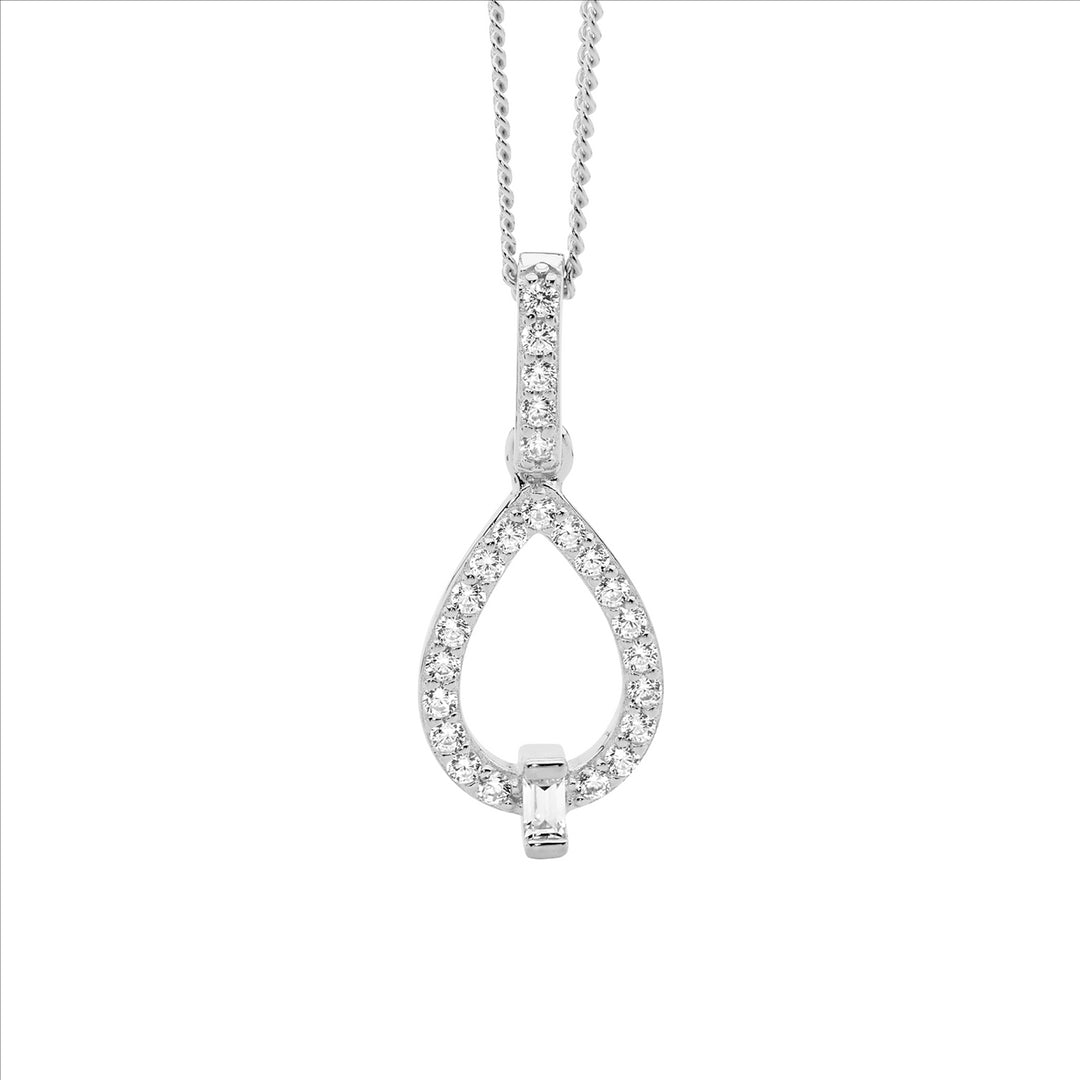 Silver CZ Halo Mother Of Pearl Clover Necklace