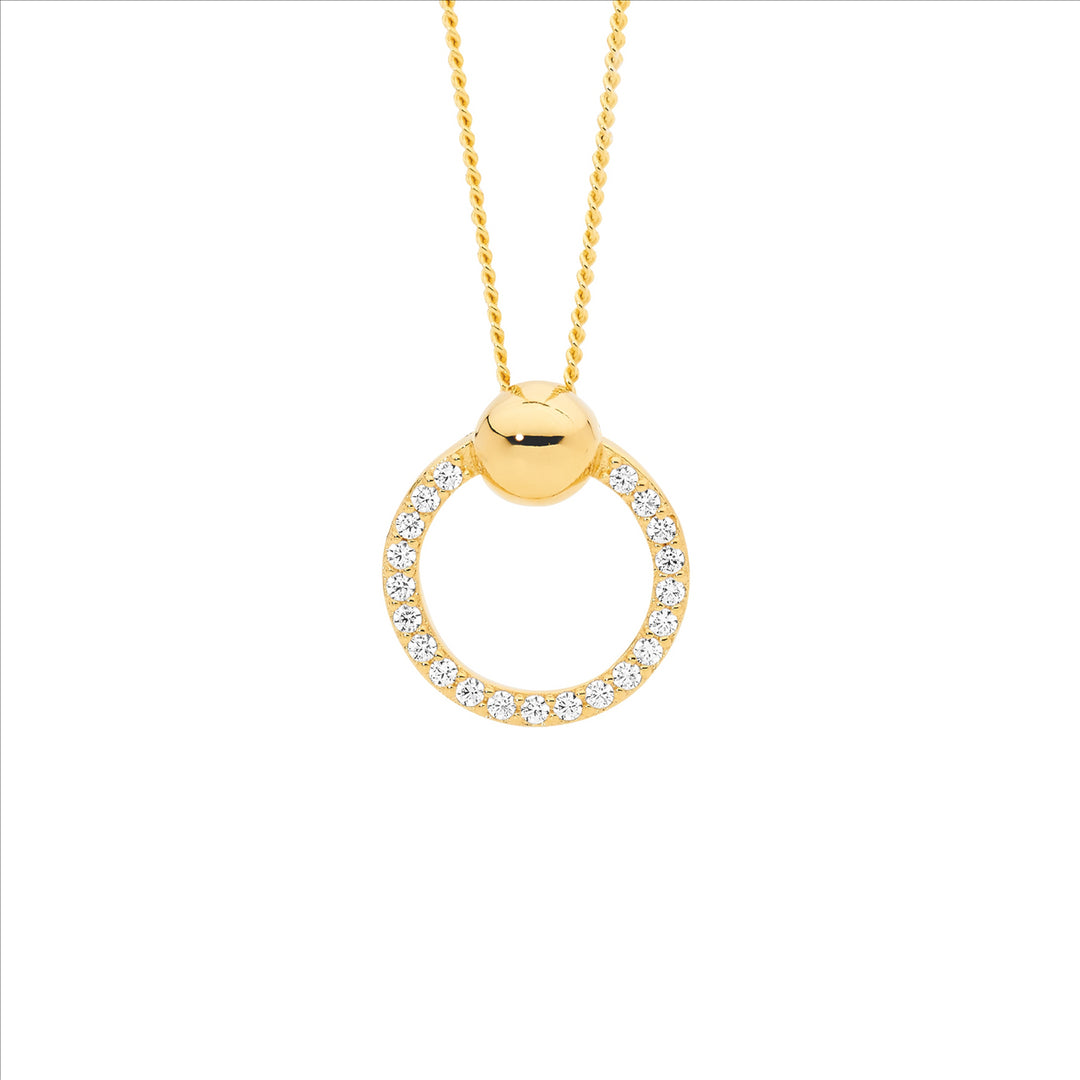 Ellani Yellow Gold Plated CZ Circle Necklace