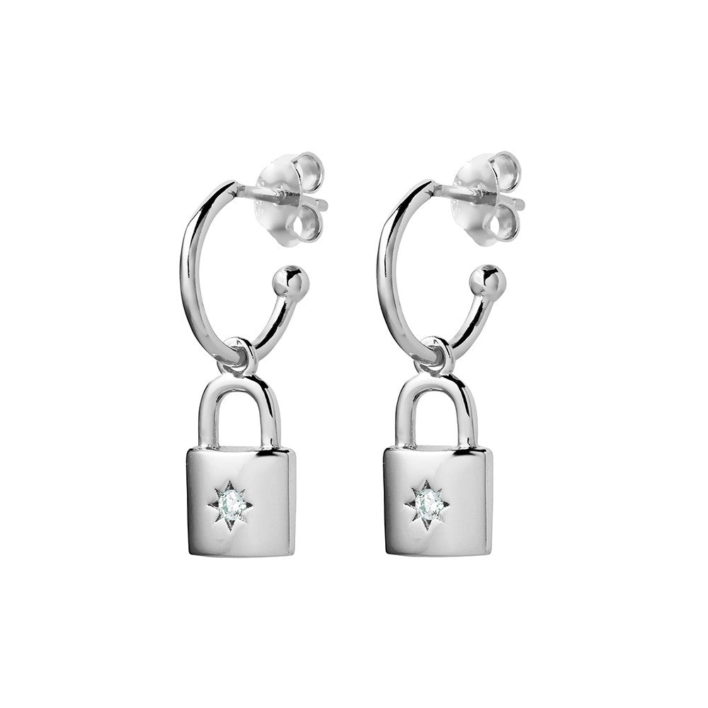 Sterling Silver 3/4 Hoop With Locket Charm Featuring Cz