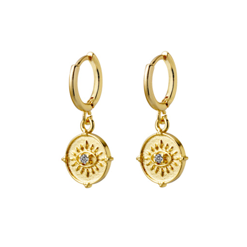 Gold Plated CZ Huggie With Devil Eye Charm