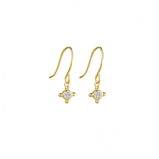 Ellani S/S Wh Cz Shepherds Hook Earrings, 7Mm Rnd Wh Cz Drop, Yellow Gold Plating